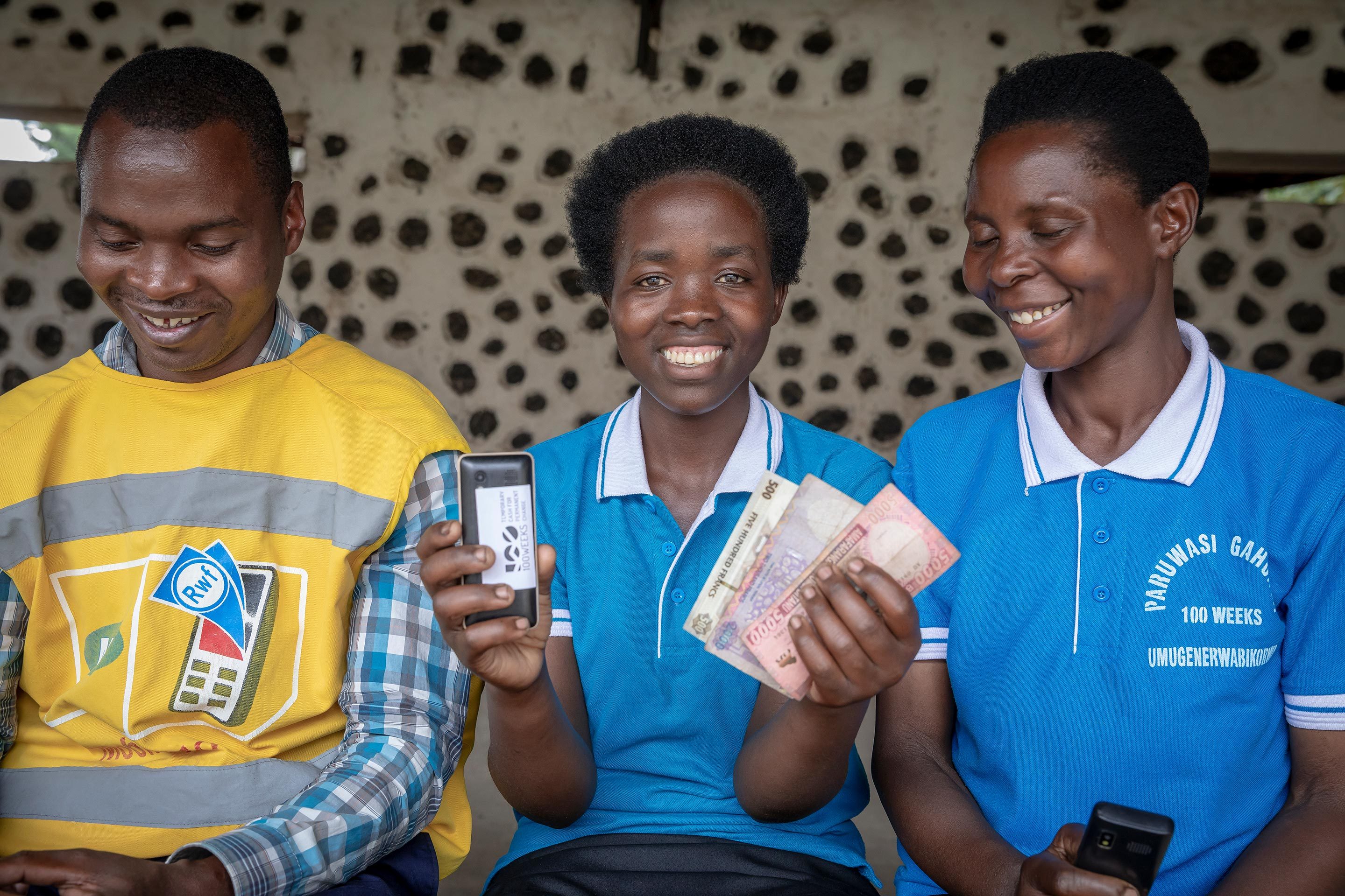 In Afrikaanse landen is mobiel betalen de norm. Het is veilig en goedkoop. De 100WEEKS-vrouwen krijgen elke maandagochtend een SMS met een code die ze bij een ‘mobile money’ kiosk kunnen omzetten in contant geld. Naast hun wekelijkse bijdrage krijgen ze van lokale coaches training in boekhouden, sparen en plannen.